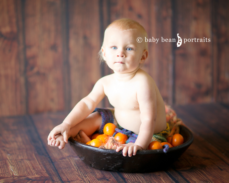 Little Ethan posed in a bowl full of oranges. He was quite a little smarty, and could say, “Orange!” all by himself!