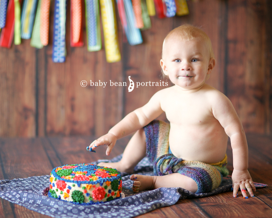 When it was time for the “cake smash,” Baby Ethan started off with just a little poke or two into the frosting…